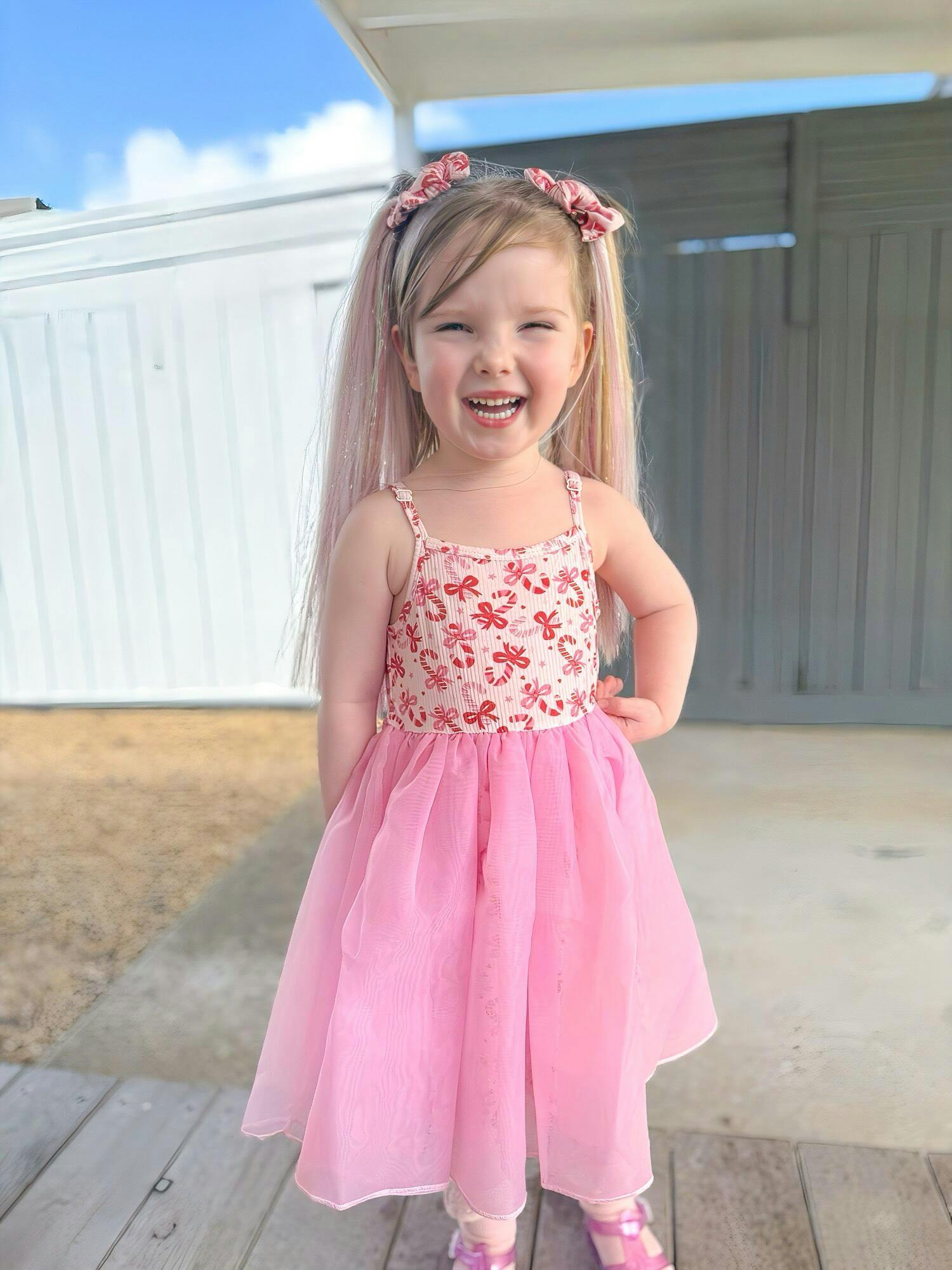 The dress of DREAMS! Honestly the most beautiful dress we have ever received. The quality is always 10/10 super soft ribbed material for the top of the dress with adjustable straps which we all need. Even the Tutu is the softest fabric. True to size. Absolutely beautiful 💕💕