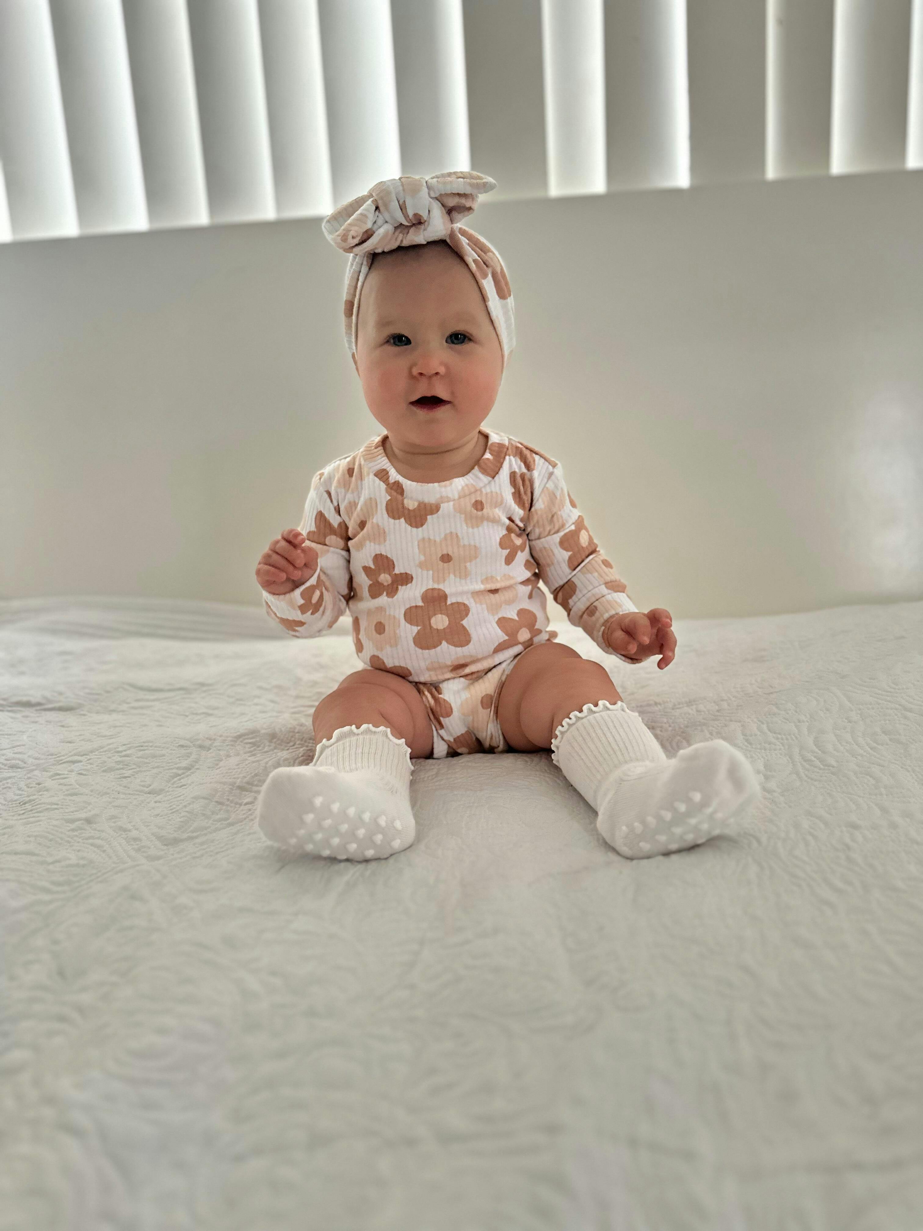 The Luna Bodysuit is such a beautiful piece! The flower print is so sweet and the colours are even nicer in person. The fabric is soft, stretchy, and really comfortable for my little one to move around in. It fits perfectly and looks adorable on its own or with the matching accessories. Such great quality and a wardrobe staple for us! 🌼✨