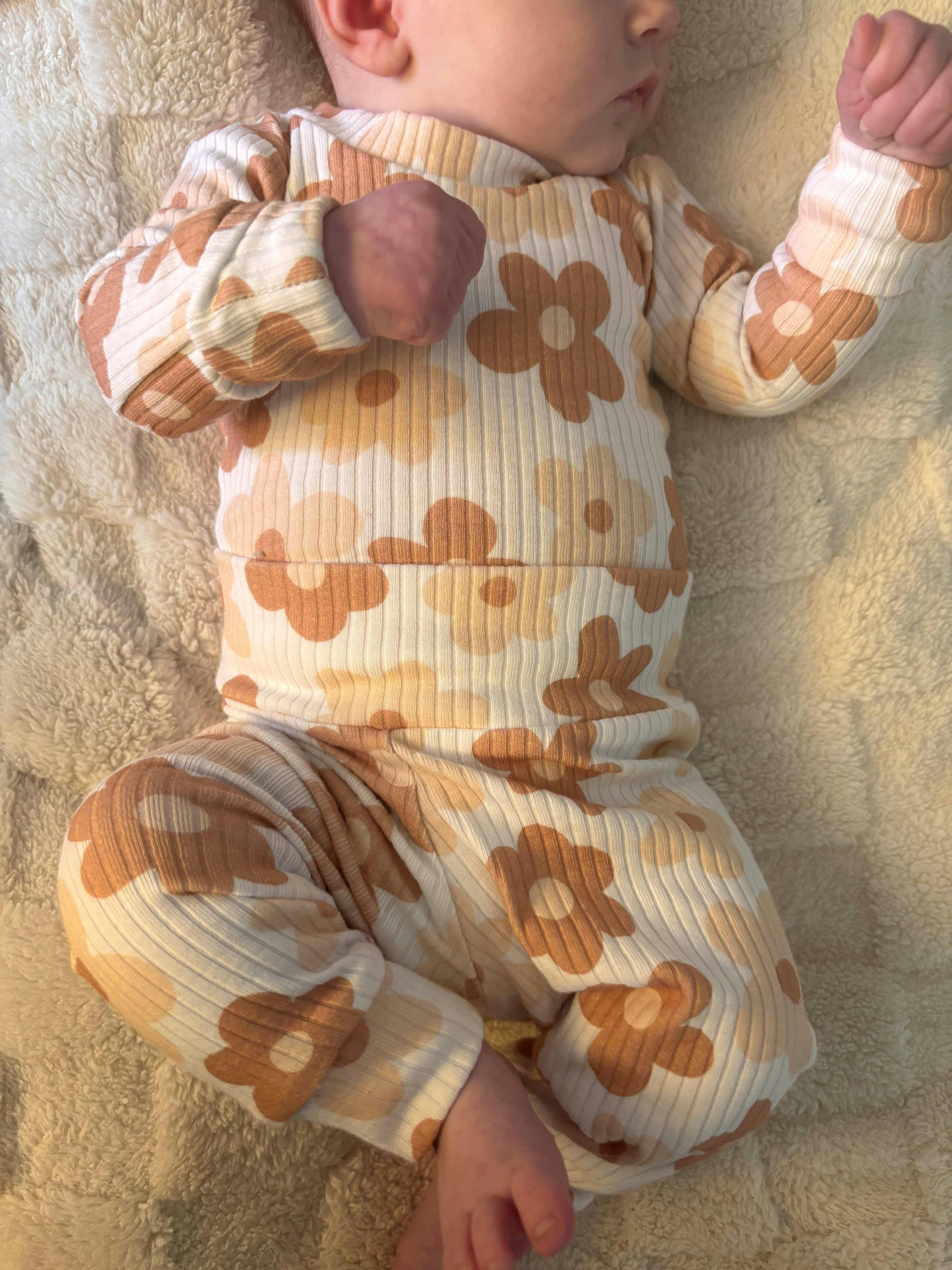 Keep your little darlings warm with our beautiful, handmade ribbed leggings. Featuring gorgeous florals in cream and brown on a white base.