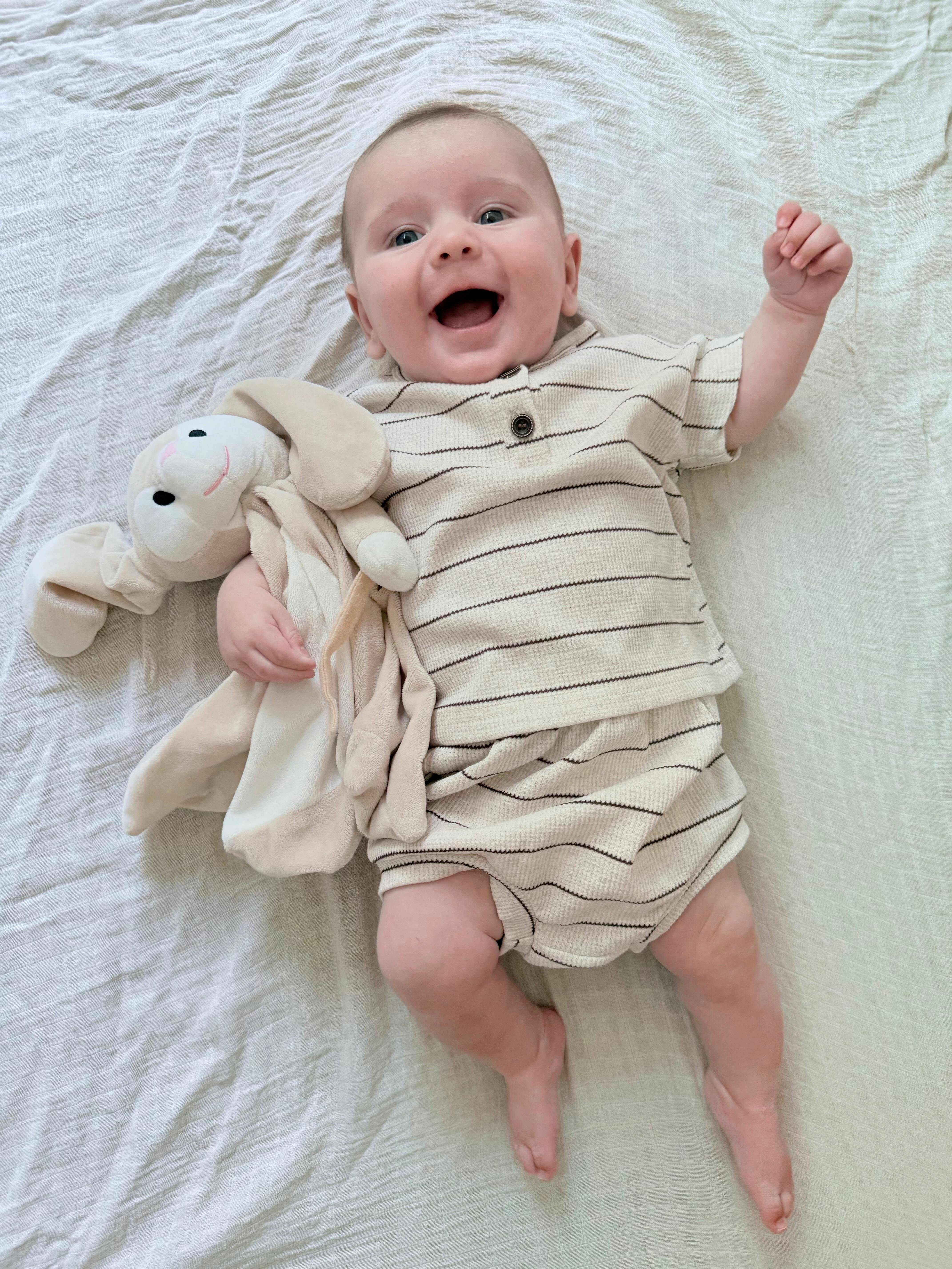 This gorgeous creamy coloured oatmeal striped set is perfect for a casual day out! Lightweight and comfy for your little darlings.